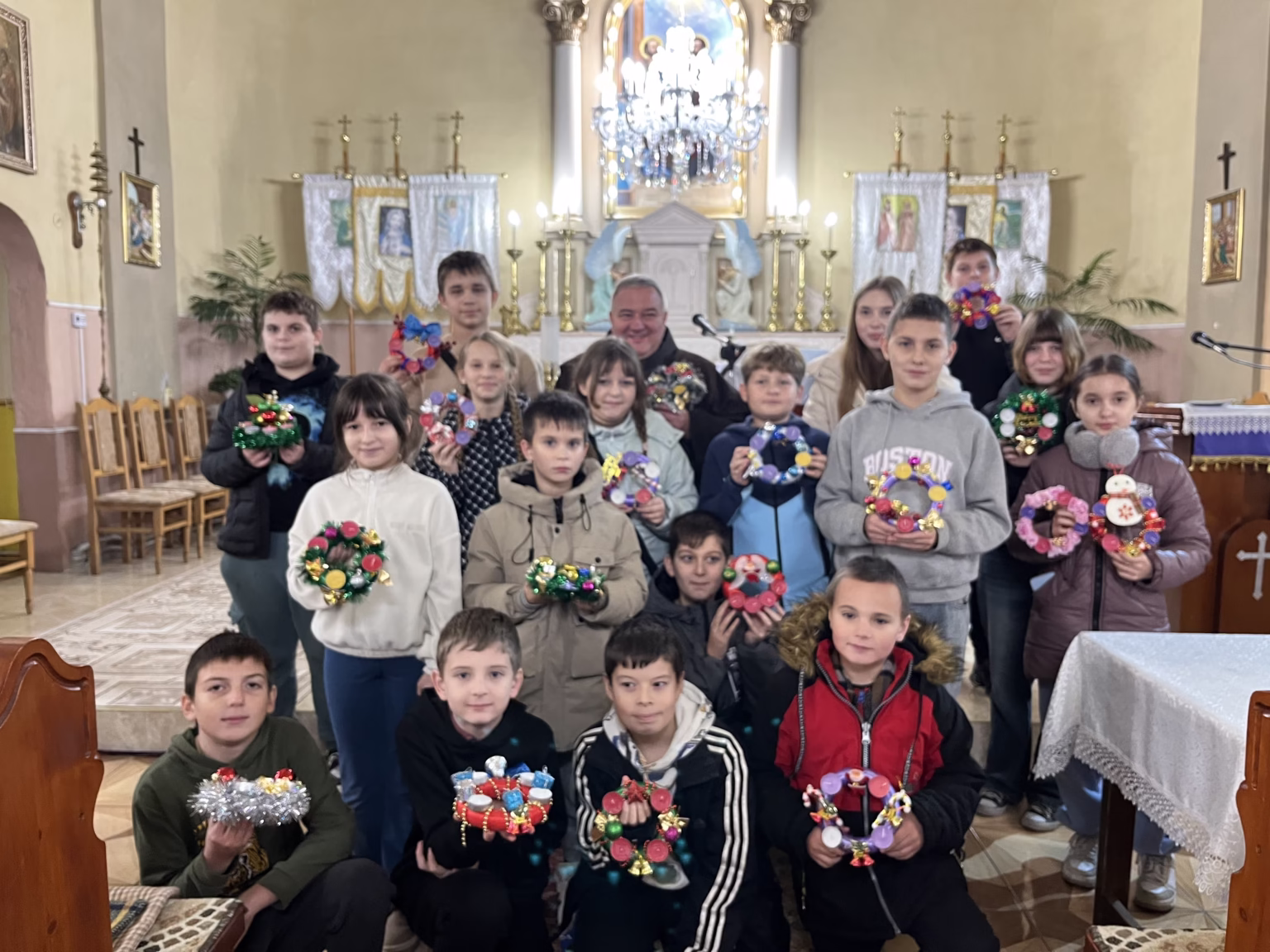 Nagyszőlősön november 29-én került megrendezésre a hittanos gyerekek számára az adventi kézműves hittan. Az ovisoktól kezdve a bérmálkozásra készülő hittancsoportig bezárólag mindenki lelkesen fogott neki, hogy elkészítse adventi koszorúját. A legkisebbek édesanyjuk segítségével szorgoskodtak, a nagyobbak munkáját a hitoktatók és Márió atya kísérték figyelemmel.